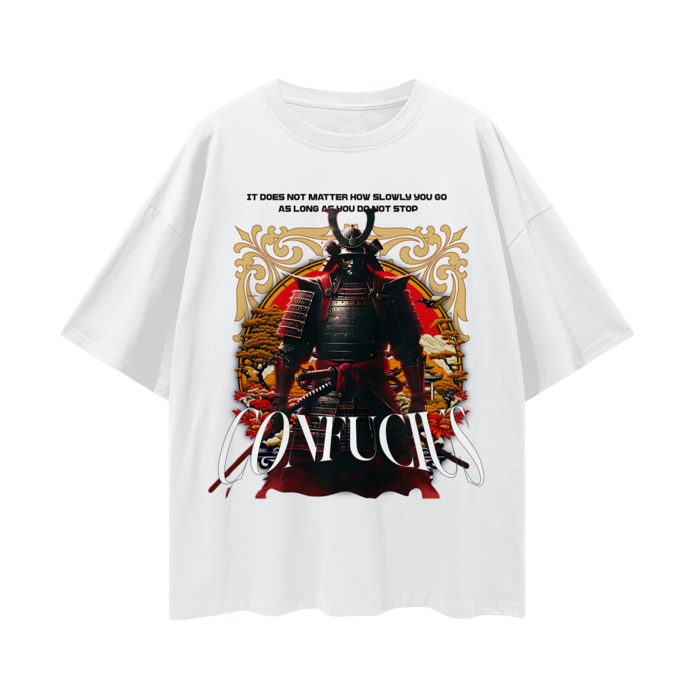 Confucius taught that steady movement, not haste, defines greatness. This tee embodies the mindset of the disciplined — those who keep walking through doubt, fatigue, and time itself. Because true strength isn’t in how fast you rise, but in never quitting the climb.